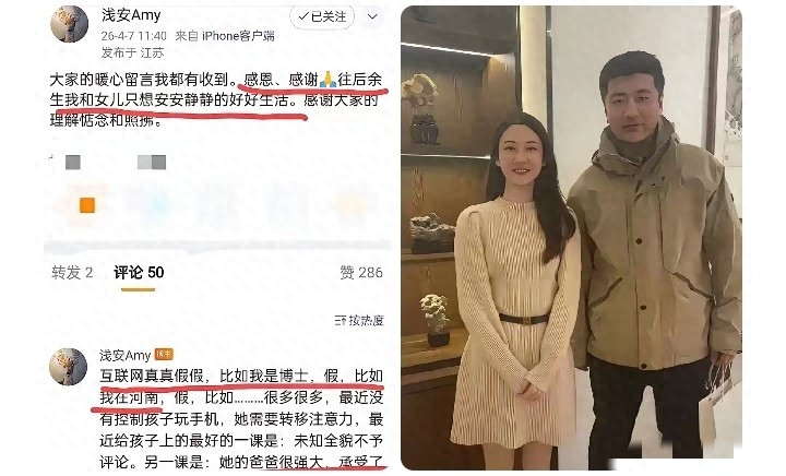 最近,张雪峰内助的一番发文,在网上炸了锅。莫得丽都辞藻,莫得浓烈责难,仅仅清闲地说了几句大真话:辟谣我方不是博士、不在河南,本年35岁,比张雪峰小7岁;但愿和儿子张姄菡安适意静过日子,深爱丈夫承受太多,并未否定离异;甚而直白忽视,卖掉公司套现,专心护理孩子和老东谈主,远隔瑕瑜。