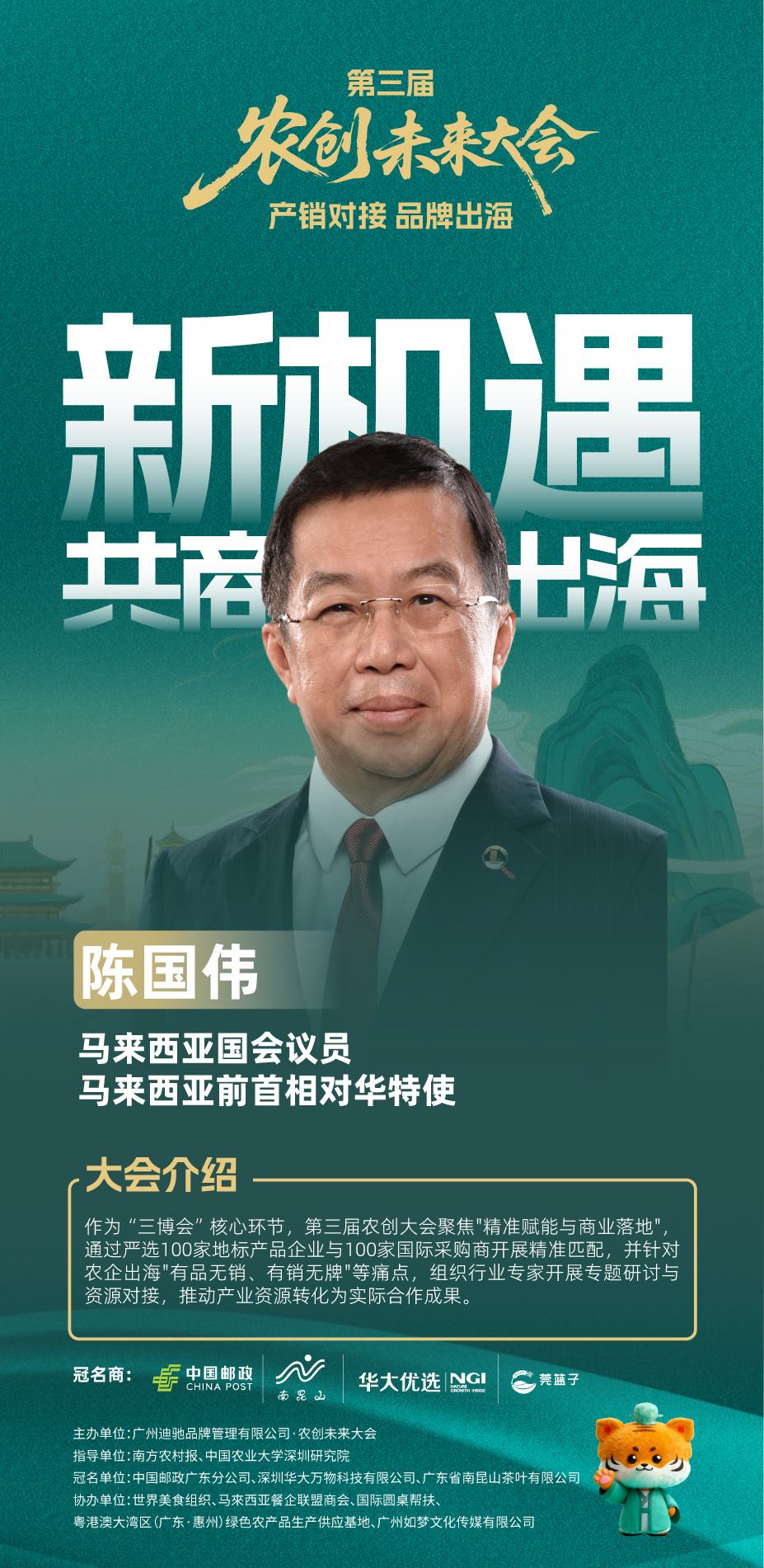 行动大会重磅亮点,马来西亚出任主宾国,马来西亚国会议员、前对华特使陈国伟将亲临4月10日13:30举办的农创异日大会峰会并致辞。届时,马来西亚官方采购团将携精确采购需求亮相,蚁集100余家海表里采购商现场对接,为中国优质农家具、预制菜、农业科技家具买通东南亚市集“纵贯车”。