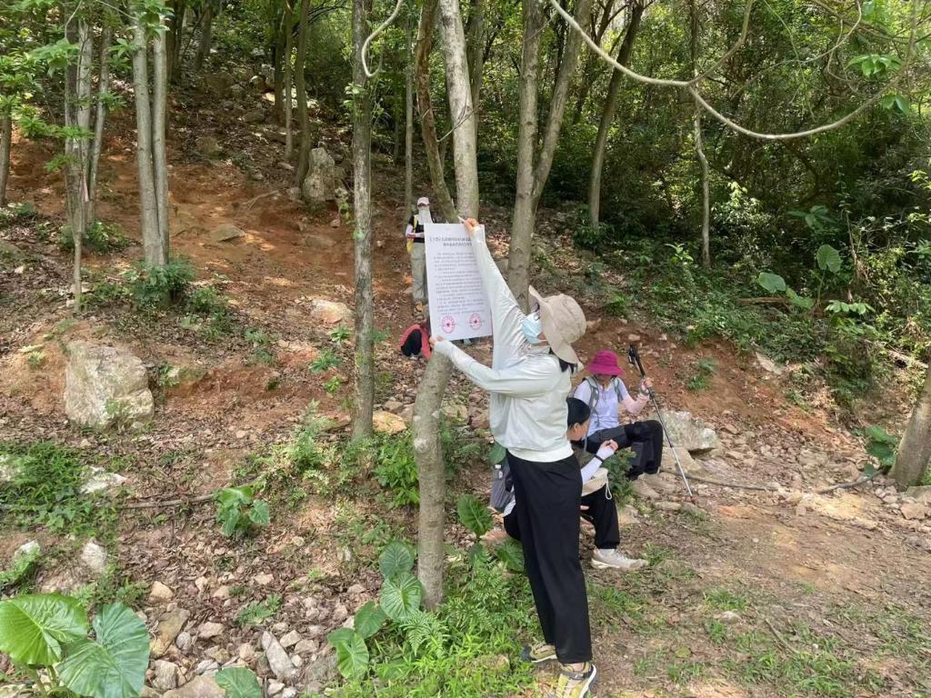 在广州市黄埔区,当地街谈已在登山口建筑劝导岗位。新华社发
