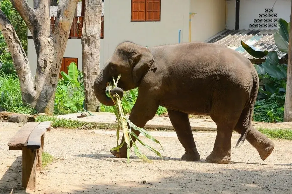 大象会食用东说念主类种的香蕉,因为比拟于野生植物,香蕉有着更高的养分价值。|Samui Elephant Sanctuary